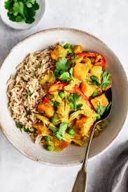 “Delicious healthy slow cooker yellow chicken curry made with warming spices, coconut milk and a hint of peanut butter for savory flavor.” This is the perfect meal for a cold night.